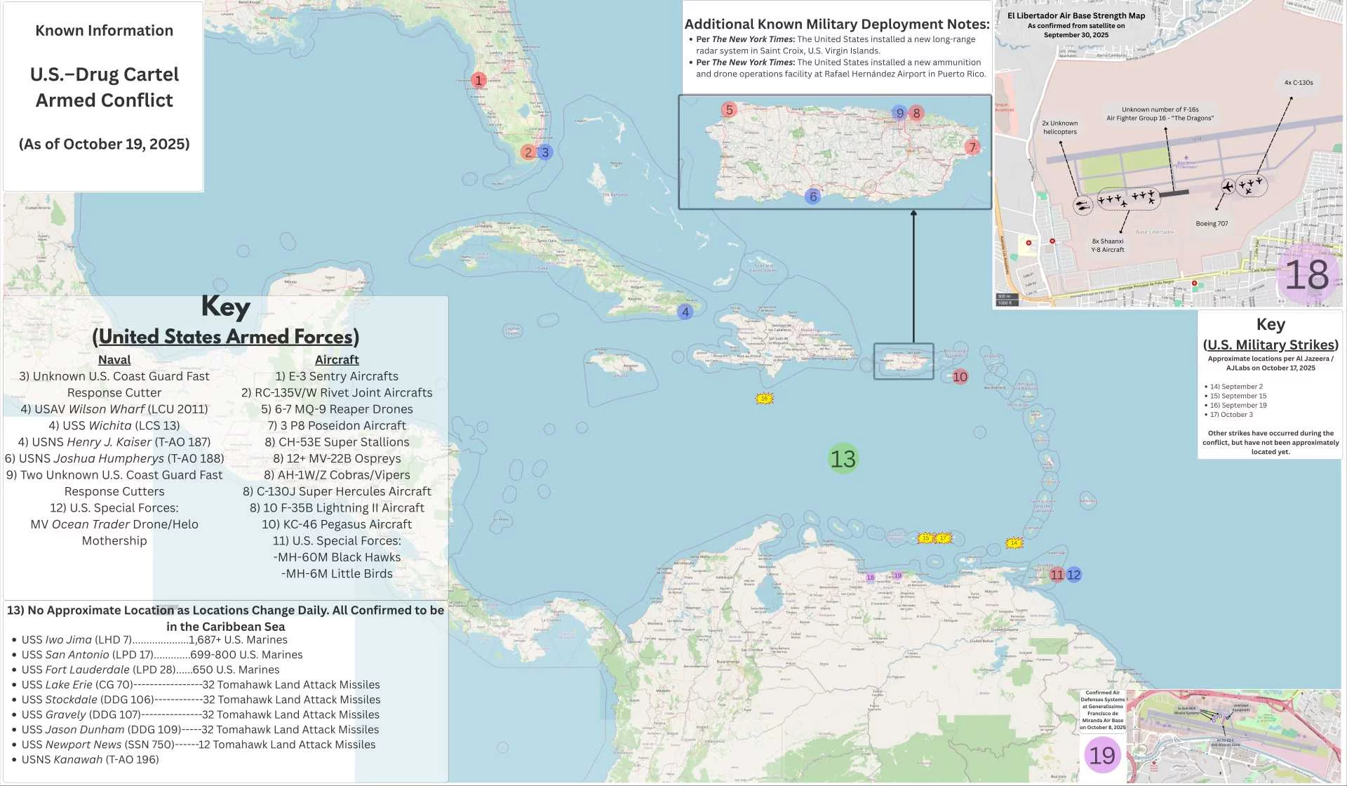 Görev grubunda F-35B Lightning II savaş uçakları, MQ-9 Reaper İHA’lar ve AC-130J Ghostrider uçaklarının yer aldığı bildiriliyor. Ayrıca P-8A Poseidon deniz karakol uçakları ve bir Virginia sınıfı denizaltı, kaçakçılıkla bağlantılı hedefleri izleme görevini sürdürüyor.