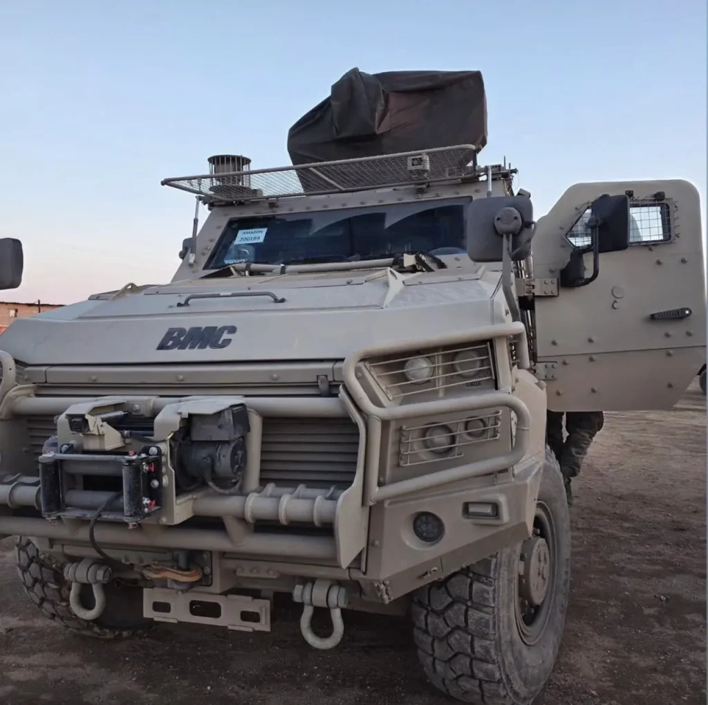 Türk savunma sanayiinin son yıllarda öne çıkan taktik araçlarından biri olan BMC üretimi AMAZON 4×4, Suriye sahasında yürütülen güvenlik ve terörle mücadele faaliyetlerinde kullanılan araçlar arasında yer alıyor. Yaklaşık 15 ton ağırlığındaki zırhlı araç, özellikle personel intikali ve riskli bölgelerdeki görevler için tercih ediliyor.