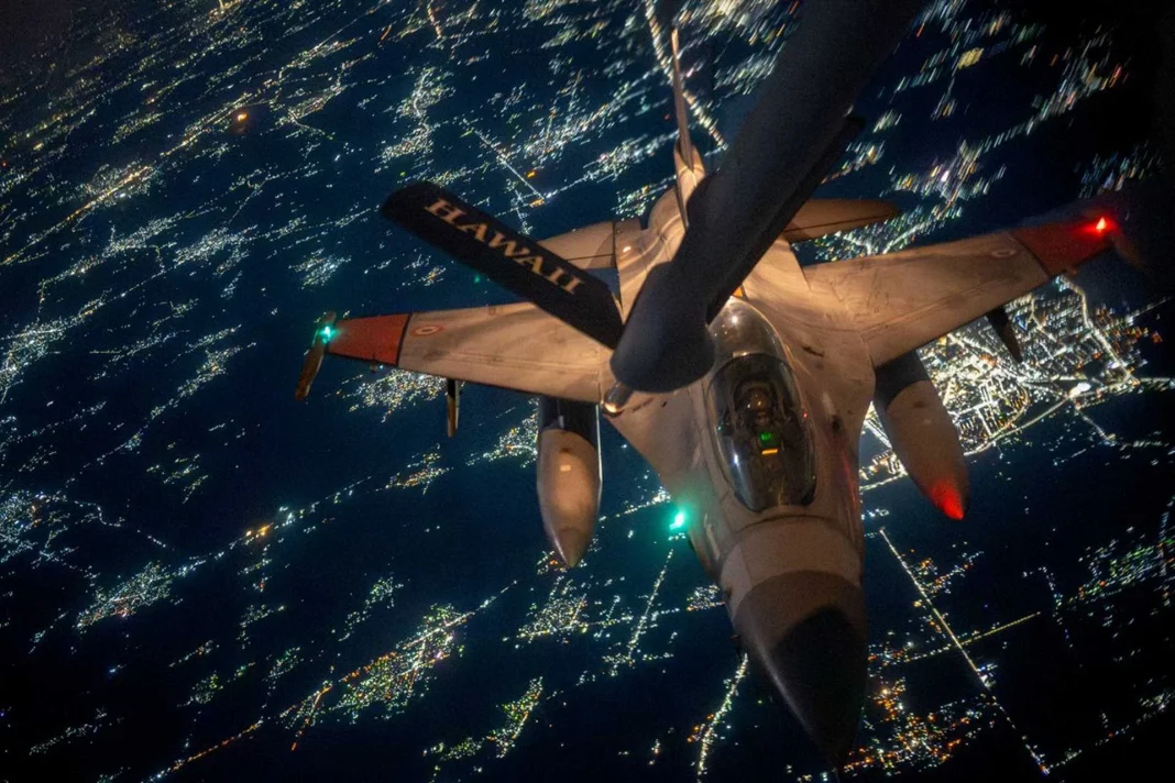 ABD’ye ait KC-135 tanker uçağı ileri konuşlu bir üsten havalanarak seyir irtifasında gerçekleştirdiği ikmal sayesinde Mısır F-16’sının görev menzilini uzattı. Bu tür ikmal faaliyetleri, yalnızca teknik bir başarı değil, aynı zamanda bölgede müttefiklerin operasyonel erişimini ve caydırıcılığını artıran stratejik bir mesaj niteliği taşıyor.