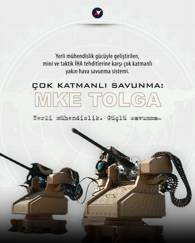 Makine ve Kimya Endüstrisi AŞ (MKE) tarafından geliştirilen Tolga Yakın Hava Savunma Sistemi, insansız hava araçlarının savaş alanlarında belirleyici hâle geldiği yeni dönemde Türkiye’nin yerli ve milli çözümü olarak öne çıkıyor. Mini ve mikro İHA’lardan akıllı mühimmatlara kadar düşük irtifa tehditlerine karşı tasarlanan Tolga, entegre yapısı ve modüler mimarisiyle modern savunma doktrinlerine güçlü bir cevap veriyor.