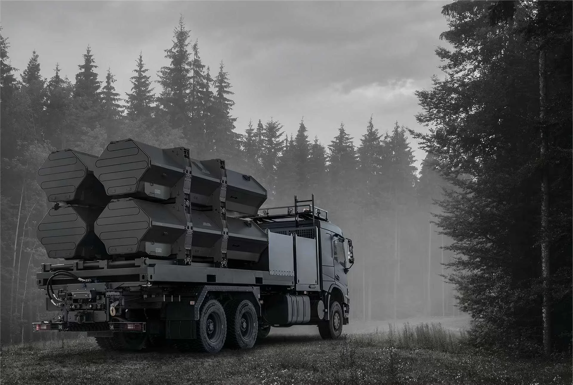 Her bir fırlatıcı aracı, 20 feet’lik ISO konteyner boyutuna uyacak şekilde yerleştirilmiş dört RBS15 füzesi taşıyor; bu standart yapı konuşlandırma kolaylığı, gizlenme ve hızlı yer değiştirme sağlıyor. Saab mühendisleri, atıştan sonra iki dakikaya kadar sürebilen “shoot-and-scoot” (at ve çekil) döngüsünü vurgulayarak sistemin karşı atışlara karşı hayatta kalabilirliğini öne çıkarıyor. Fırlatıcılar kendi hidrolik güç üniteleri ve yerleşik kumanda sistemlerine sahip; mürettebat hem araç içinden hem de kablolu uzaktan kumanda ile sistemi idare edebiliyor.