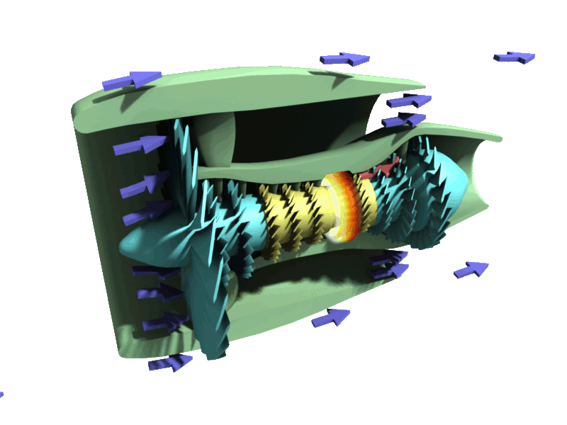Turbofan motorlar, modern havacılıkta sıkça kullanılan ve yüksek verimlilik sunan motor türleridir. Bu motorlar, uçakların hız ve irtifa performansını artırmak için tasarlanmıştır. Temel çalışma prensibi, bir türbinin elde ettiği gücün, büyük bir fanın (fan kanatları) döndürülmesi için kullanılmasıdır.