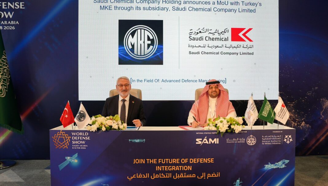“MKE olarak World Defense Show 2026 Fuarında Suudi Arabistan’da yerleşik Saudi Chemical Company Limited ( ile iş birliğimizi geliştirmek amacıyla öncelikli olarak mühimmat üretiminde kullanılan patlayıcı hammade ve enerjetik malzemelerin ortak üretim ve satışına yönelik mutabakat zaptı (MoU) imzaladık.